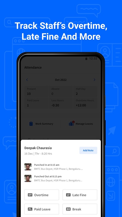 Используйте PagarBook бесплатно в качестве системы управления работниками или приложения для управления посещаемостью. Менеджер посещаемости PagarBook позволяет владельцам или менеджерам бизнеса отслеживать время прихода и ухода сотрудника. PagarBook также предлагает решение для беспроводного биометрического управления посещаемостью. Это также биометрическое приложение для управления посещаемостью, и сотрудники на местах также могут отмечать свою посещаемость, делая селфи. Расположение офисов будет проверено средствами гео-отслеживания и GPS-тегов.
