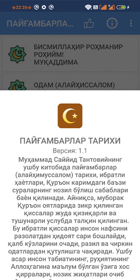 Скачайте приложение Payg’ambarlar tarixi для Android бесплатно - последняя версия (4.8) уже доступна для установки на ваш телефон или планшет.