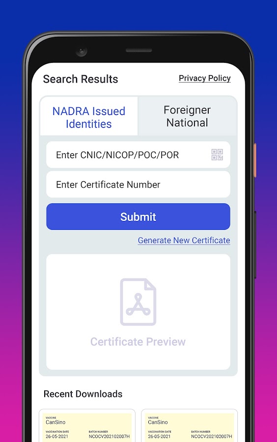 Правительство Пакистана запустило приложение Vaccination Pass, чтобы помочь людям носить с собой цифровой сертификат о прививке от Covid. Приложение позволяет пользователям загружать свидетельство о прививках, выданное через https://nims.nadra.gov.pk/nims/certificate, и сохранять его на телефоне. Цифровой сертификат является официальным доказательством наличия COVID-19 и других прививок, если он потребуется внутри страны или за рубежом. Используя QR-код, цифровой сертификат можно проверить мгновенно.