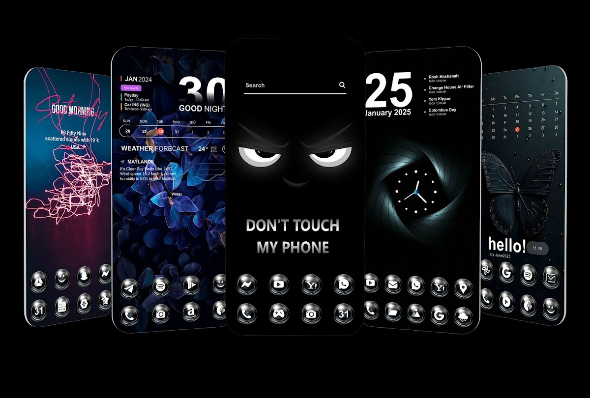 Измените стиль значков с помощью этого бесплатного приложения темы с пакетом значков, настройте темы на мобильной панели запуска в стиле HD и загрузите черные обои с помощью этого бесплатного приложения для смены значков. Пакет значков Черный, выполненный в уникальном стиле.