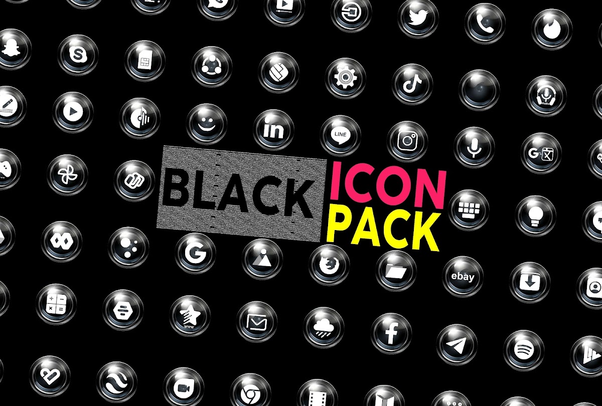 Бесплатный пакет значков в черном стиле, новые бесплатные иконки для всех приложений. Черный пакет значков и средство смены значков для всех.