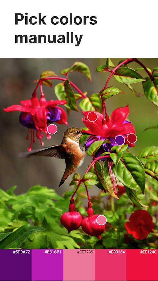 Создавайте цветовые палитры из изображений, выбирая цвета вручную или используя функцию автоматического выбора.
