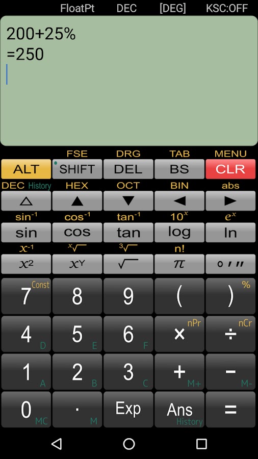 — Арифметические операции, тригонометрические функции, логарифмические функции, градусы-минуты-секунды и процентные вычисления