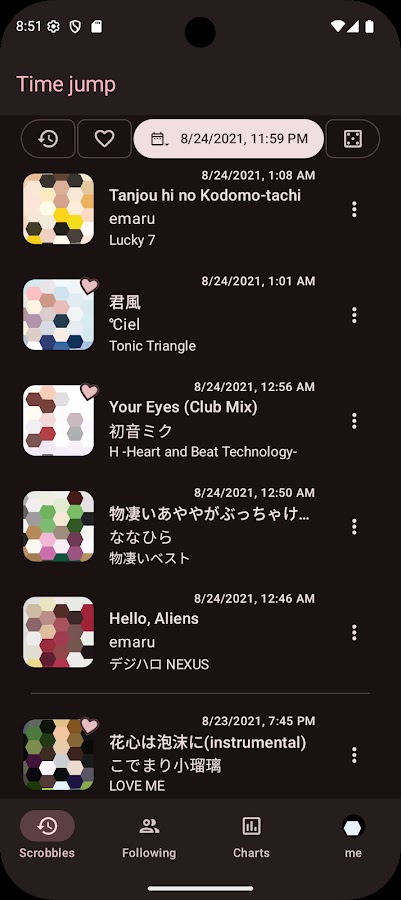 — Просмотр скробблингов за определённое время, например, за прошлый год или месяц