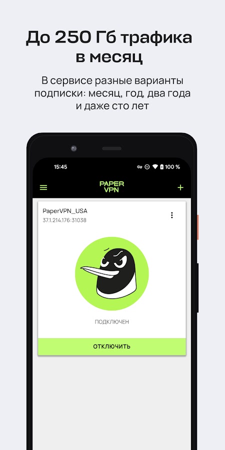 Paper VPN не сохраняет вашу историю активности. Одну подписку можно шерить на неограниченное количество устройств, максимальный ежемесячный расход трафика — 1000 Гб.