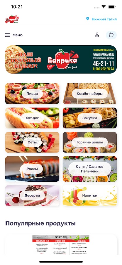 Вкуснейшая пицца, американские хот-доги, хрустящее фри меню, сытные салатики и роллы.