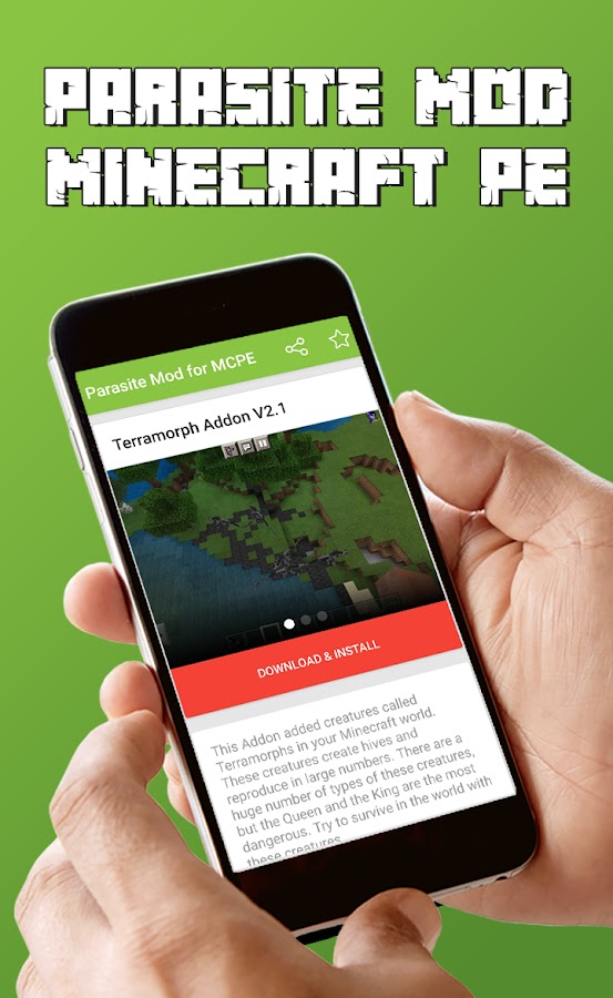 Добро пожаловать в Parasite Mod для MCPE! Это приложение позволило вам легко загрузить и установить Terramorph Addon в Minecraft Pocket Edition всего за 1 клик!