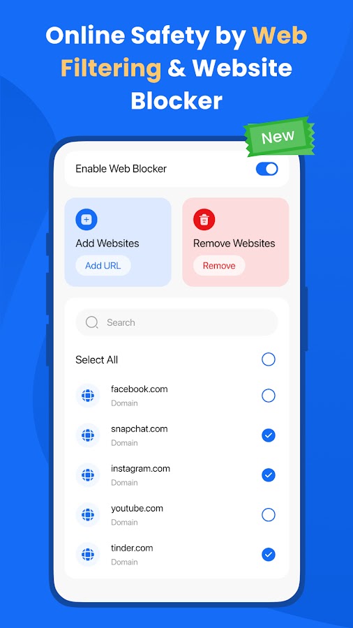 Веб-блокировщик. Родители могут обеспечить безопасность своего ребенка в цифровом мире, заблокировав нежелательные веб-сайты, создав черный список.