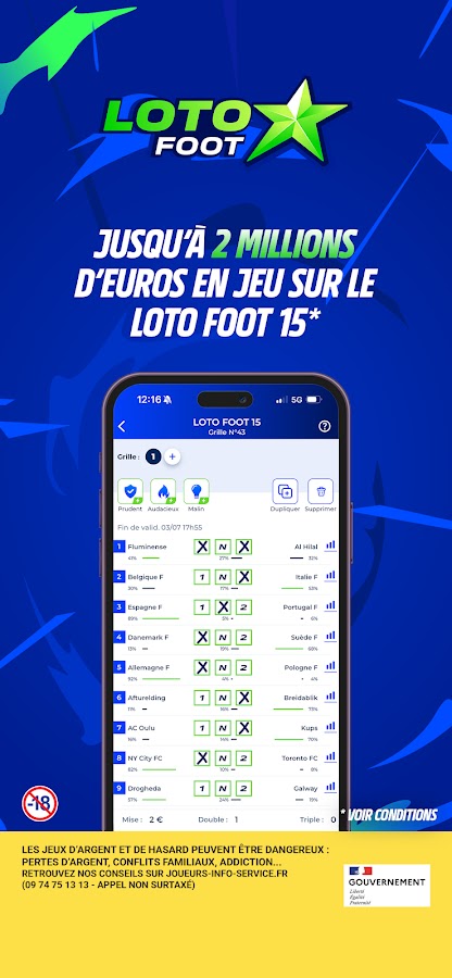 Легко подготовьте свои сетки Loto Foot, Loto Rugby или Loto Basket благодаря таким функциям, как распределение ставок в реальном времени и калькулятор выплат, чтобы оценить свой выигрыш. И следите за результатами в режиме реального времени.