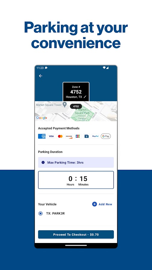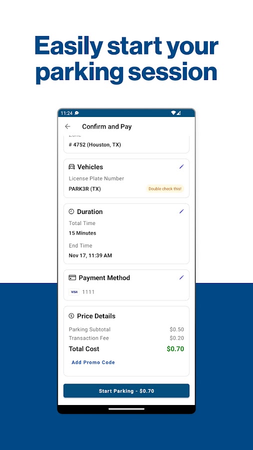 • Добавьте способ оплаты и начните использовать приложение ParkHouston.
