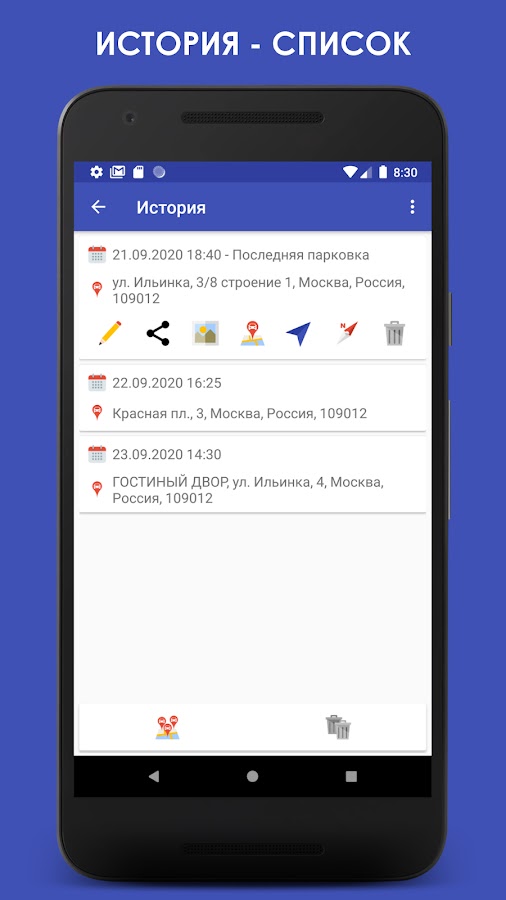Вы можете редактировать или удалять каждое парковочное место и видеть все парковочные места на карте.