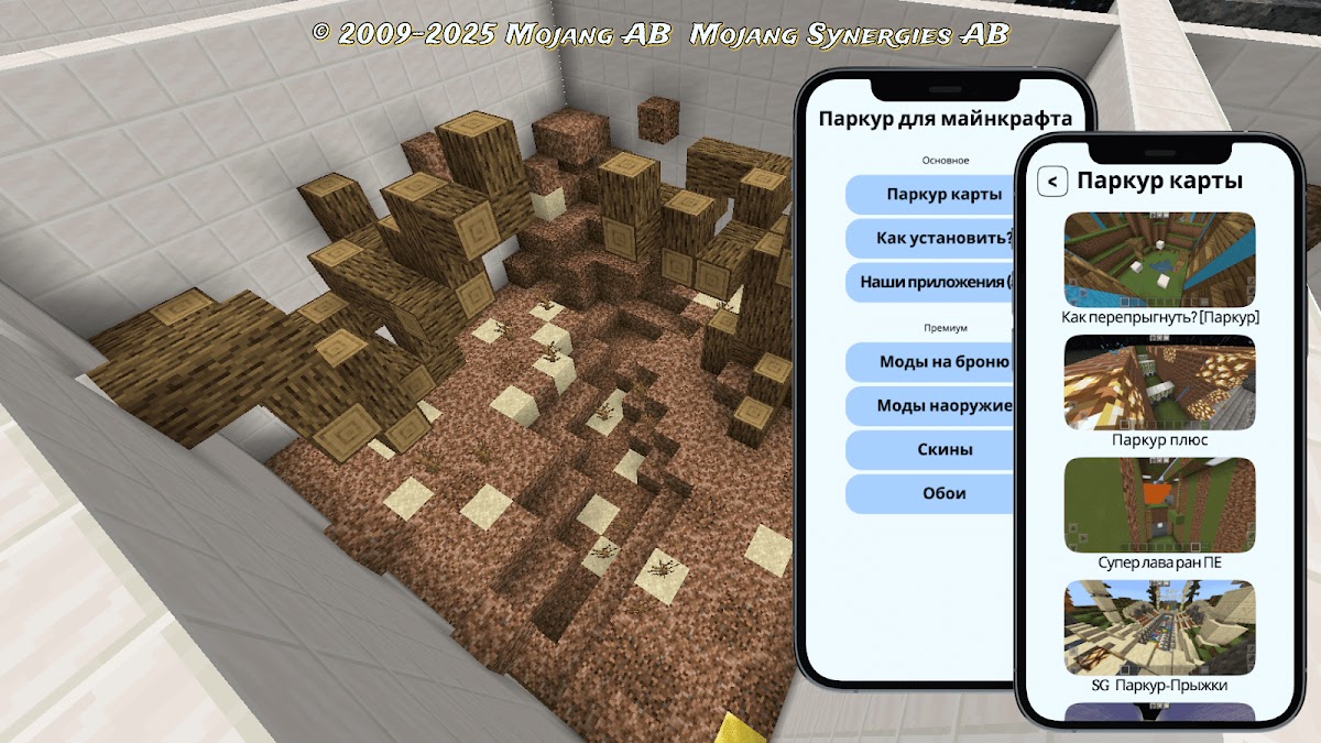 Отказ от ответственности: Это приложение не связано с Mojang. Моды на паркур является третьей стороной и его использование может повлиять на ваш игровой опыт. Мы не несем ответственности за любой ущерб, вызванный использованием этого приложения с оружейный мод.