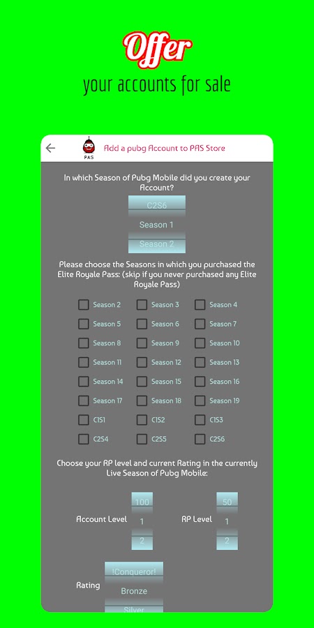 Скачайте приложение PAS — PubgM Accounts Store для Android бесплатно - последняя версия (2.9) уже доступна для установки на ваш телефон или планшет.