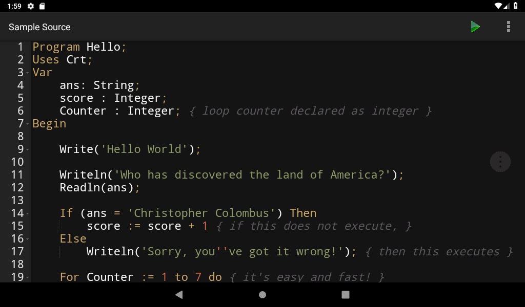 Скачайте приложение Pascal Programming Compiler для Android бесплатно - последняя версия (2.9) уже доступна для установки на ваш телефон или планшет.