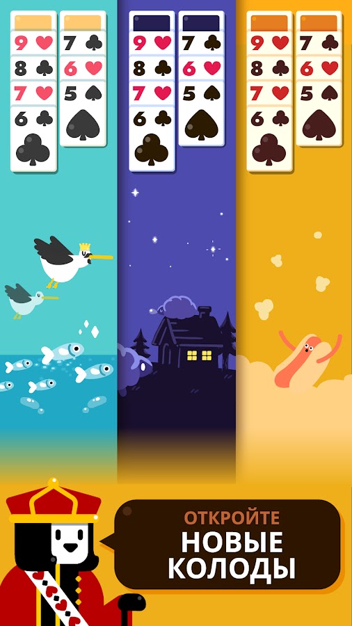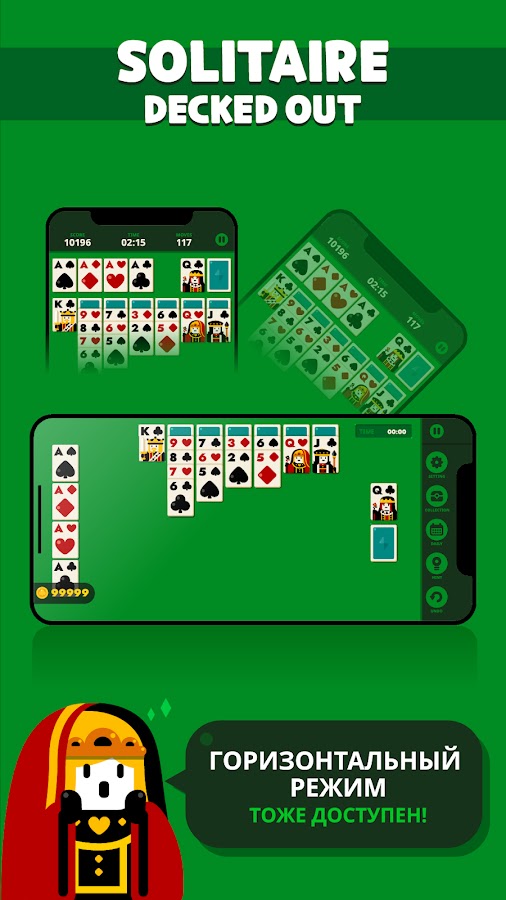 Игра, которую любят все. Доступна без интернета! Складывайте пасьянсы, чтобы зарабатывать монеты. Открывайте чудо-ящики, чтобы получить новые колоды, украшения и целые победные парады в вашу честь!