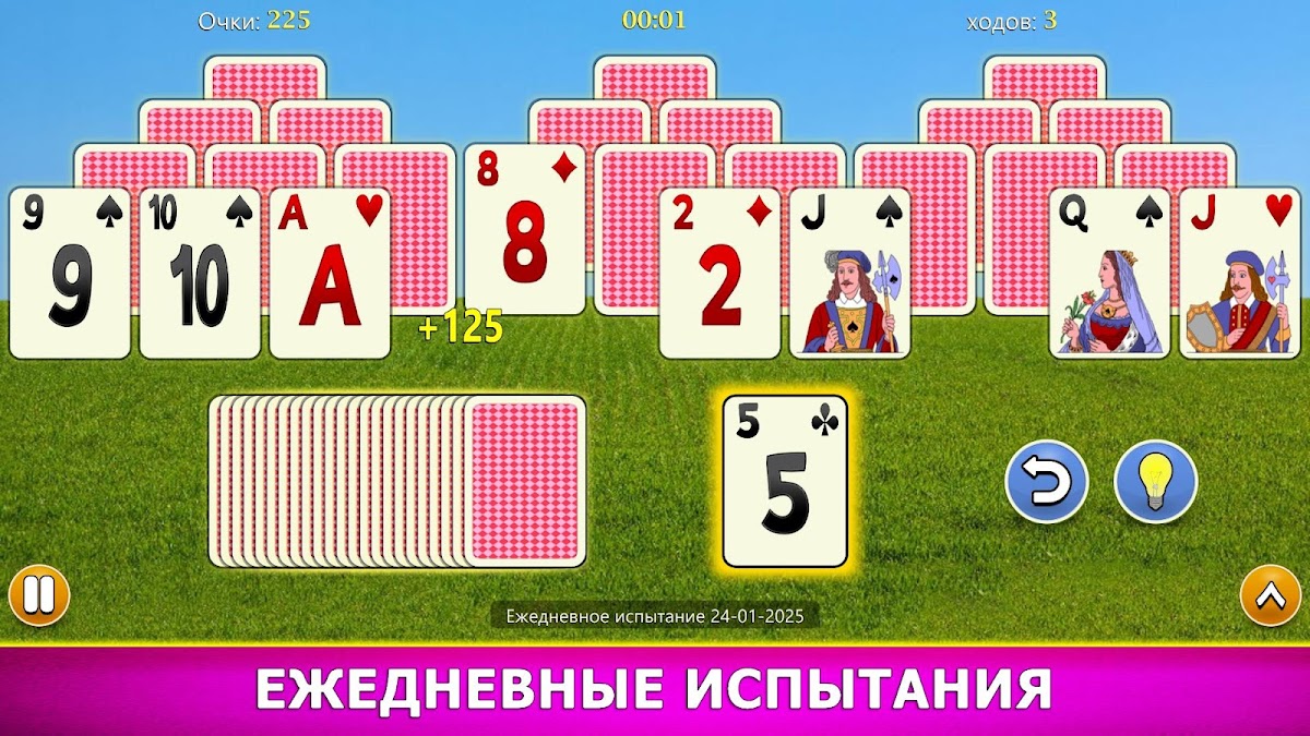 Пасьянс Три Пики для мобильных – это веселая и популярная карточная игра.