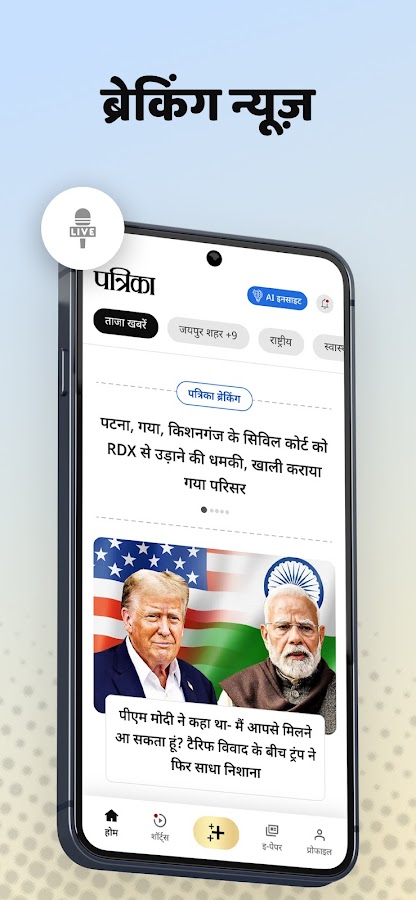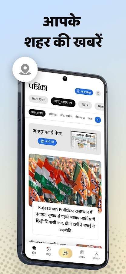Patrika (पत्रिका) — надежное индийское приложение для новостей на хинди: новости в режиме реального времени, экстренные новости, последние обновления и электронная версия.