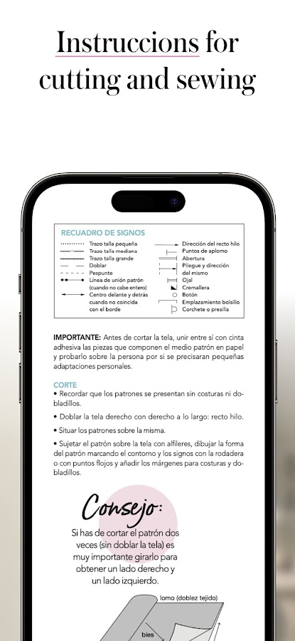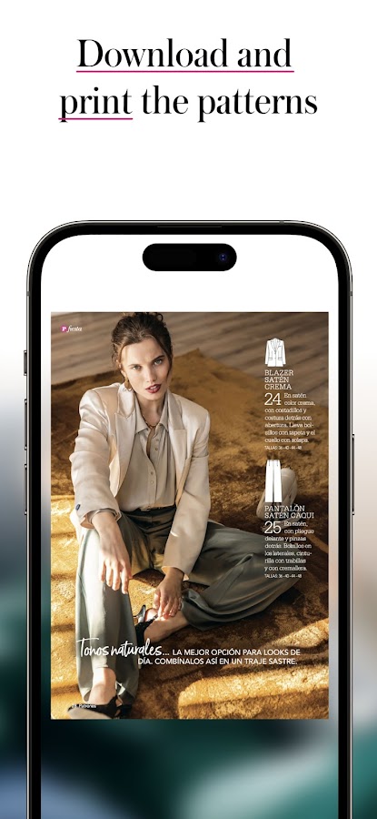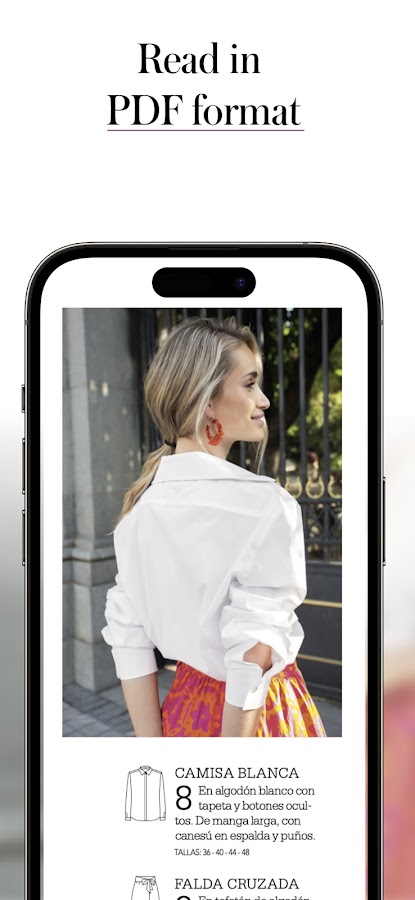 С приложением Patrones вы получите доступ к цифровой версии журнала, с помощью которой сможете начать создавать свою собственную моду. Узнайте о тенденциях сезона и о том, как их сочетать. Все это сопровождается загружаемыми выкройками с руководством по их печати и инструкциями по кройке и шитью. Размеры варьируются от 34 до 58, поэтому вы сможете найти в своем шкафу то, что хотите.