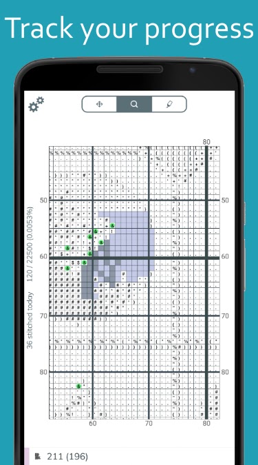 Приложение все еще находится в стадии бета-тестирования и отлично работает с некоторыми диаграммами, но не будет работать с другими. Обратные стежки и частичные стежки не поддерживаются. Сканы и изображения можно использовать, но только с ограниченными функциями.