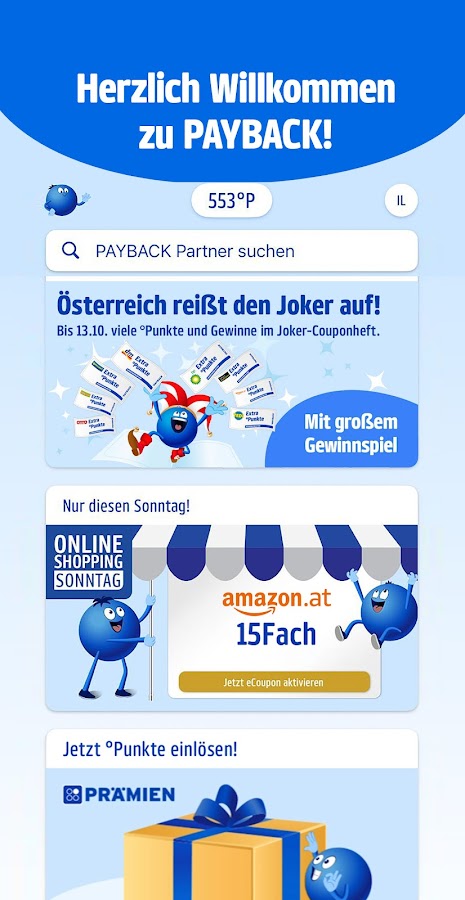 С приложением PAYBACK это того стоит: ваша цифровая карта PAYBACK, ваши персональные купоны, ваш личный баланс °points и более 300 интернет-магазинов всегда с вами. Накапливать °points ещё никогда не было так просто. Как в магазине, так и онлайн, вы можете воспользоваться множеством преимуществ и получить °points у наших партнёров, таких как bp, dm, amazon.at, TEDi, Thalia, UNIMARKT, Lieferando, adidas, ShopApotheke, OTTO и многих других.