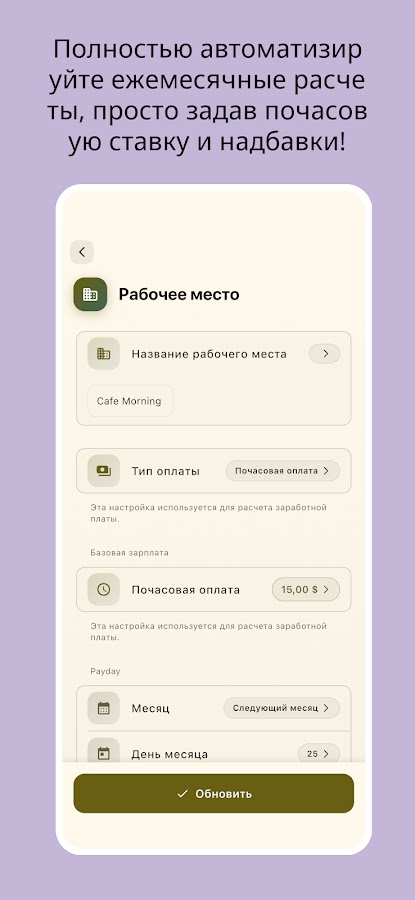 Простое и удобное в использовании приложение для управления рабочими сменами и расчета зарплаты.
