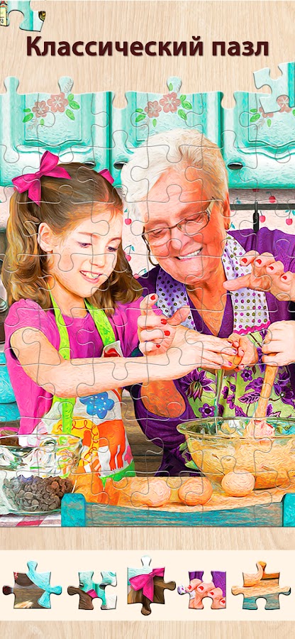 Индивидуальная сложность: Вы можете выбрать пазлы количество деталей от 36 до сложнейших 576.