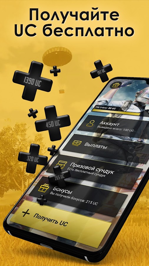 Приложение позволяет приобрести валюту UC для мобильной игры абсолютно бесплатно.