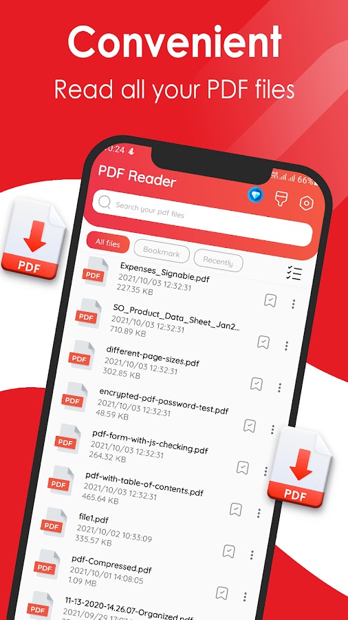 + Приложение сканирует все читаемые PDF-файлы из памяти телефона