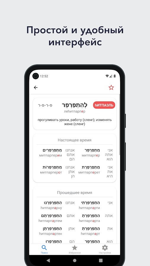 Обратите внимание: в приложении реализованы не все возможности сайта pealim.com, но мы работаем над этим. Следите за обновлениями :)