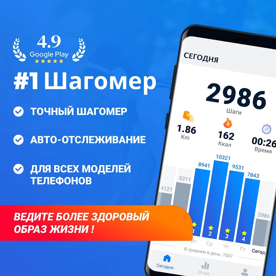 Шагомер для ходьбы на русском & шагомер и калории на русском