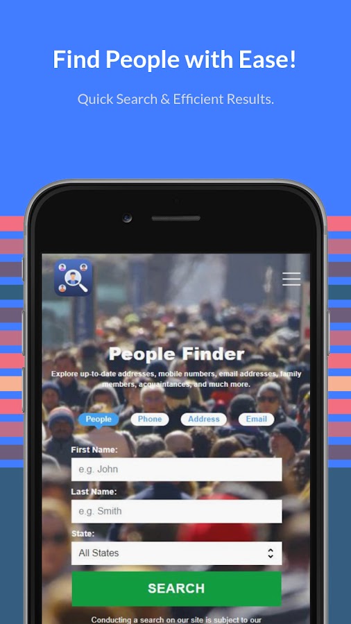 Важно отметить, что программа поиска людей предназначена для повышения доступности общедоступных записей, помогая людям принимать обоснованные решения в своей повседневной жизни. В отличие от некоторых приложений и служб, People Finder не классифицируется как агентство потребительской отчетности (CRA) в соответствии с Законом о достоверной кредитной отчетности (FCRA) и, следовательно, не может использоваться для проверки занятости, кредитоспособности или проверки арендаторов или аналогичных целей. Скорее, он служит мощным инструментом для тех, кто стремится лучше контролировать свою жизнь и защитить себя от потенциальных угроз.