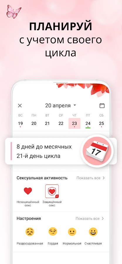 — Гибкое прогнозирование менструального цикла и возможность настройки его параметров.
