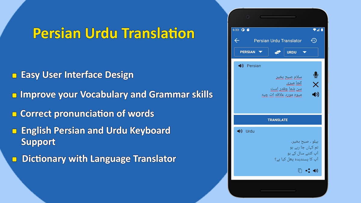 Перевод с персидского на урду — это отличное решение для конвертации и перевода. Приложение для изучения урду на персидский использует самые передовые технологии, которые обеспечивают точность перевода.