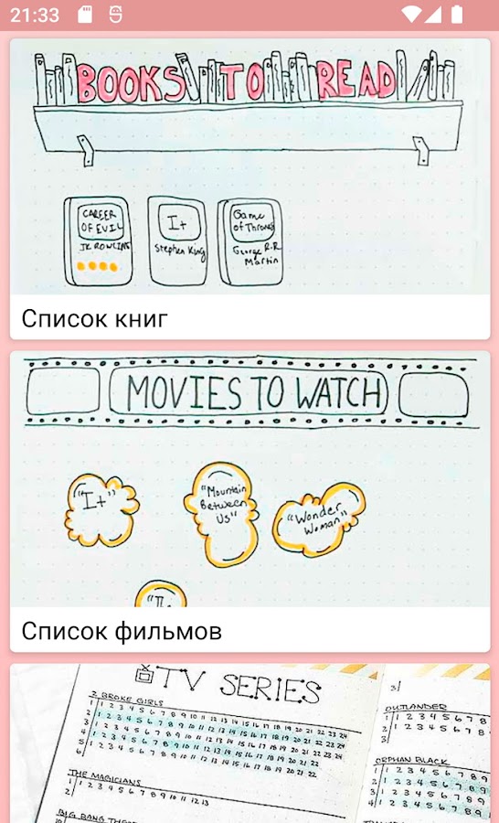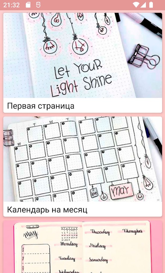Вы узнаете как интересно оформить трекер настроения, идеи для лд как разбавить страницы текста зарисовками, рамками и разделителями, как красиво оформлять различные списки, поделимся оригинальными идеями разворотов и многое другое.
