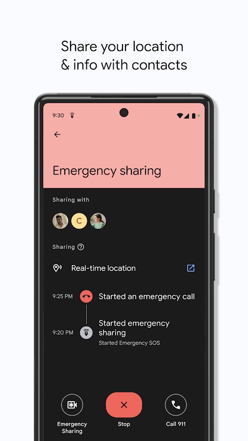 • Отправка данных в экстренных случаях. С помощью этой функции можно передавать информацию о текущем местоположении и другие важные данные контактам для экстренных случаев. Функция также работает с Google Ассистентом.