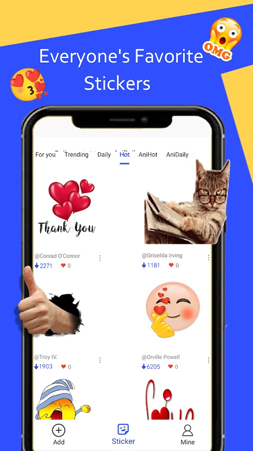 Откройте для себя миллионы забавных анимированных стикеров для WhatsApp и создайте свои собственные стикеры.