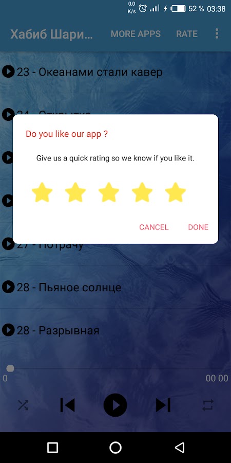 В этом приложении есть замечательный шансон Хабиба Шарипова, который можно использовать часами, не используя интернет-функционал — вы можете использовать его, не планируя пожертвования — и есть 20 замечательных музыкальных композиций, которые можно использовать в качестве будильников, будильников и т. д. Набор — простота в использовании — футуристический дизайн — качество музыки дежа элеве и очень приемлемо для оригинала — в отдельном приложении много функций (все в одном)