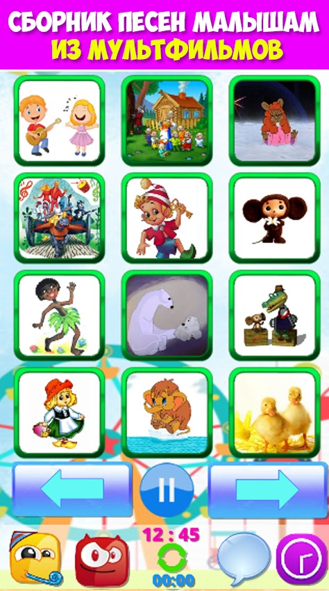 Скачайте приложение Песни из мультфильмов малышам для Android бесплатно - последняя версия (25_08_2024) уже доступна для установки на ваш телефон или планшет.