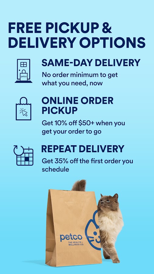 Приложение Petco является партнером домашних животных. Используйте его, чтобы умело побаловать своего питомца как в Интернете, так и в наших магазинах.