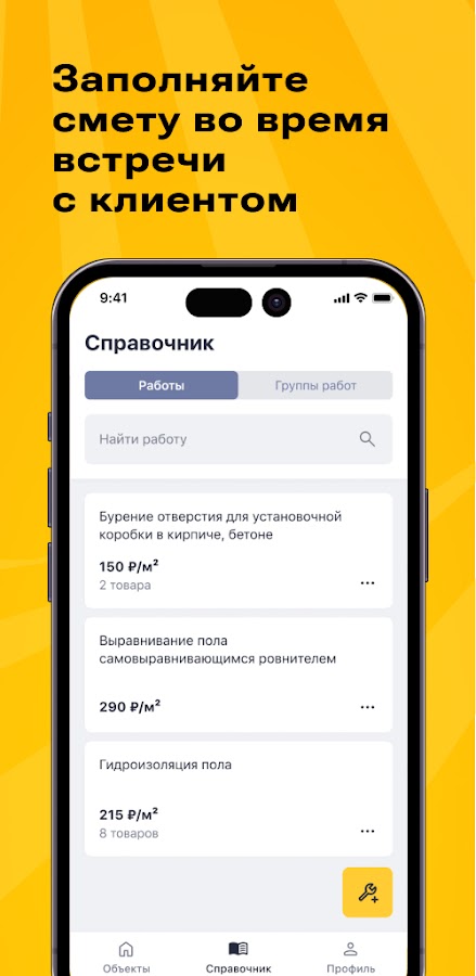 Согласовывайте сметы с клиентами всего в один клик, отправляйте смету прямо из приложения и эффективно управляйте строительными проектами.