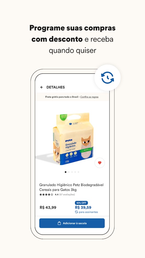 Мы также поможем вам ничего не забыть. Запланируйте свои покупки с помощью подписки Petz и получите 10% скидку на все, что вы покупаете в приложении, на сайтах и в физических магазинах. При желании воспользуйтесь функцией повторной покупки и повторите заказ одним щелчком мыши.