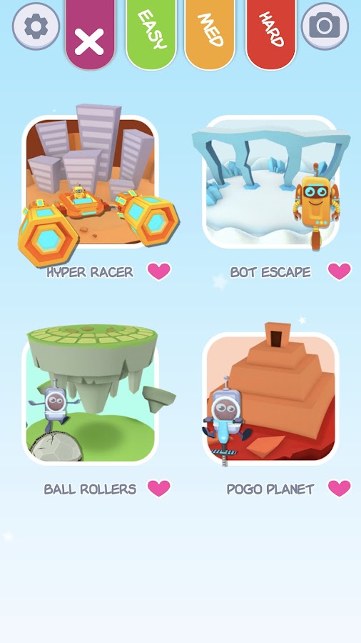 Найдите игры, которые вам нравятся, отфильтровав их по уровню сложности. Или прокрутите вниз и посмотрите все занятия на выбор. Теперь вы также можете сохранять игры, которые вам нравятся больше всего, в качестве избранных, чтобы находить их еще быстрее — просто нажмите на сердце под игрой.