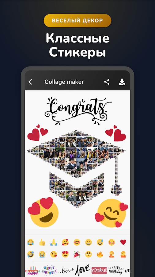 — Добавление текста на фото и стикеров: Мощный инструмент для добавления текста на фото с различными шрифтами, стилями и опциями форматирования. Добавьте веселые и выразительные стикеры, чтобы сделать ваше творение по-настоящему уникальным.