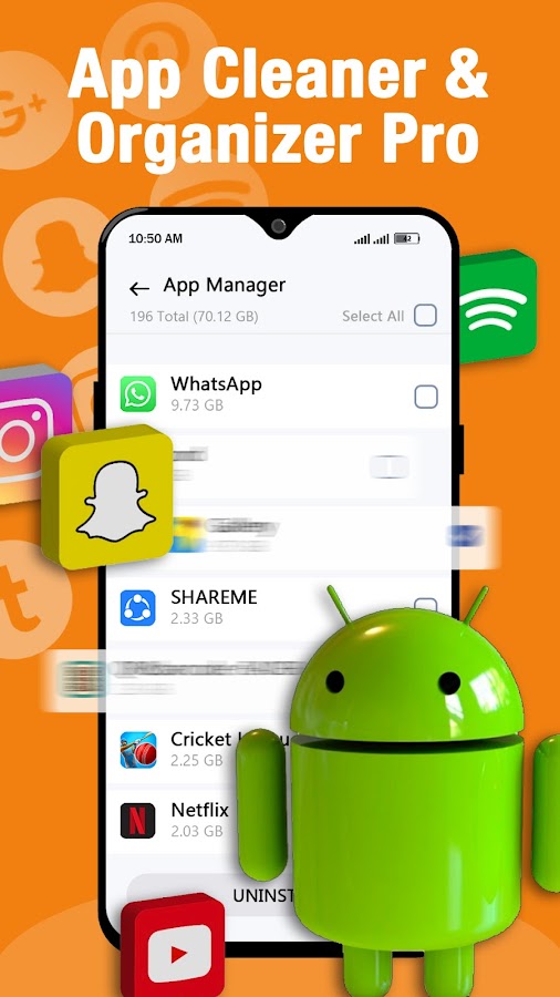 Диспетчер приложений помогает вам видеть и управлять всеми приложениями на вашем телефоне. Вы можете хорошо работать со своими приложениями и быстро находить большие приложения! Вы также можете увидеть размер каждого приложения на своем телефоне.