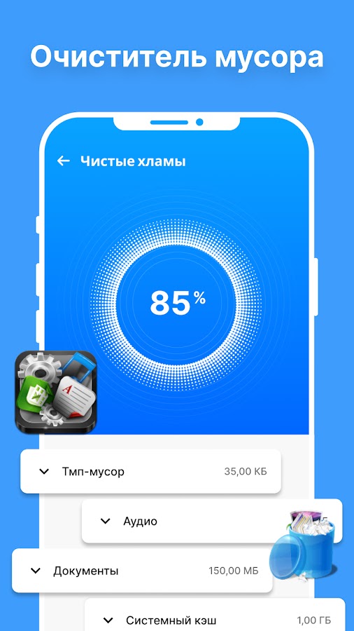 Используйте функцию отчистка телефона и очистка мусора на андроид приложение , чтобы очистить кэш файлы и освободить свой телефон от временных и нежелательных файлов. Клинер для андроид приложение также помогает вам отчистка телефона от вирусов не внося никаких изменений в ваше устройство.