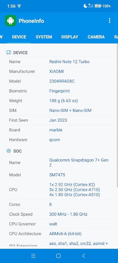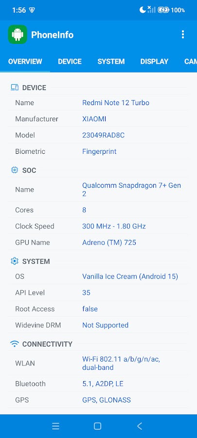 Phone Info предоставляет полную информацию о состоянии вашего Android-устройства в режиме реального времени — от ядер процессора до характеристик камеры.