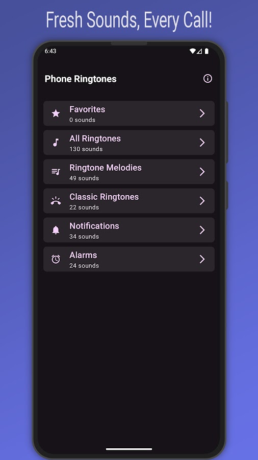 Получите 130 высококачественных рингтонов, звуков уведомлений и будильника совершенно бесплатно. Наша коллекция включает современные мелодии для звонков, классические звуки старых телефонов, сигналы уведомлений и громкие звуки будильника, чтобы вы могли персонализировать свое Android-устройство.