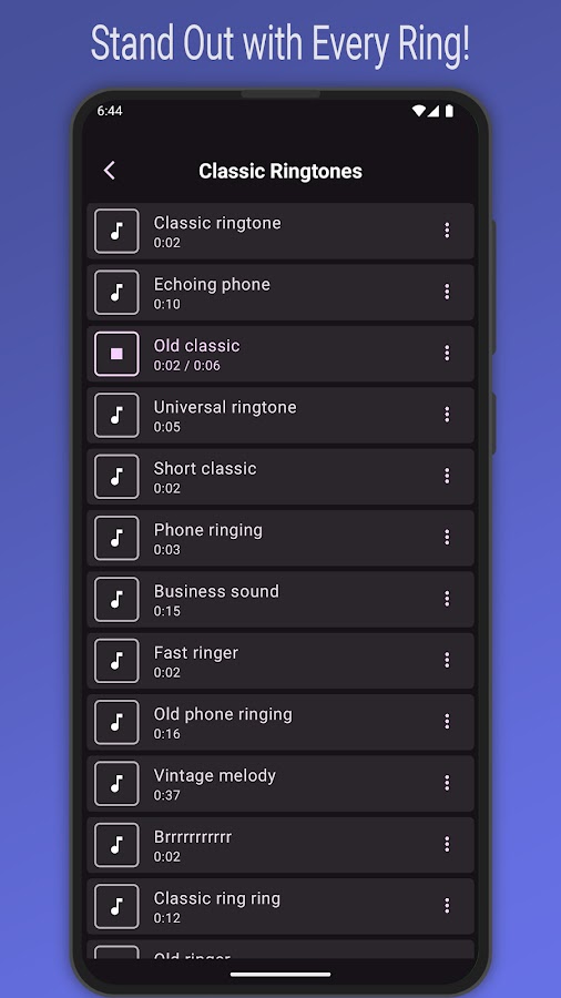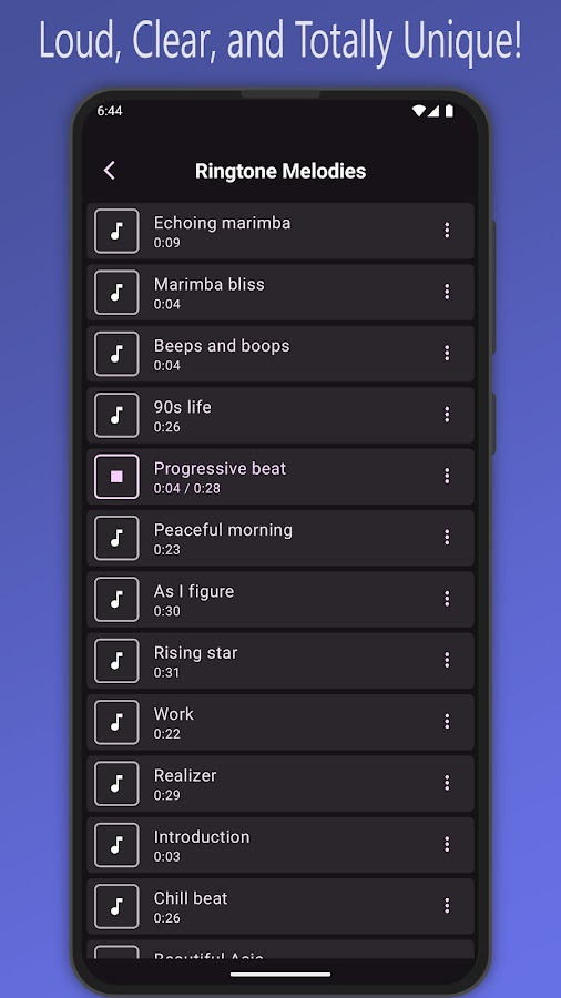 Преобразите свой телефон с помощью уникальных рингтонов, которые помогут вам выделиться. Выбирайте из запоминающихся современных мелодий для входящих звонков, ностальгических классических звуков телефона, вызывающих приятные воспоминания, ненавязчивых сигналов уведомлений для сообщений и приложений или громких, даже раздражающих будильников, которые точно вас разбудят.