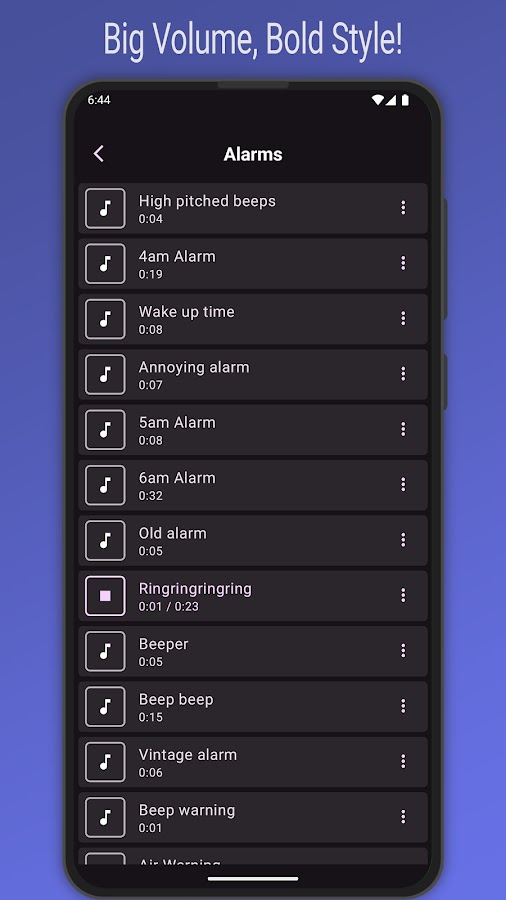 Ищете ли вы профессиональные рингтоны для работы, забавные звуки для личного использования или эффективные будильники, которые гарантированно не дадут вам проспать – в этом бесплатном приложении вы найдете именно то, что нужно. От едва слышимых сигналов звонка до ярких мелодий – подберите идеальный звук для любой ситуации.