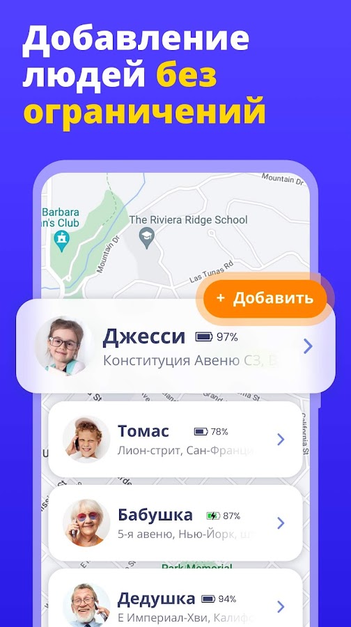 🗒 Неограниченное количество пользователей и история — вы можете добавить в свою сеть столько близких, сколько захотите, и просматривать их полную историю местоположения, ничего не платя за это.